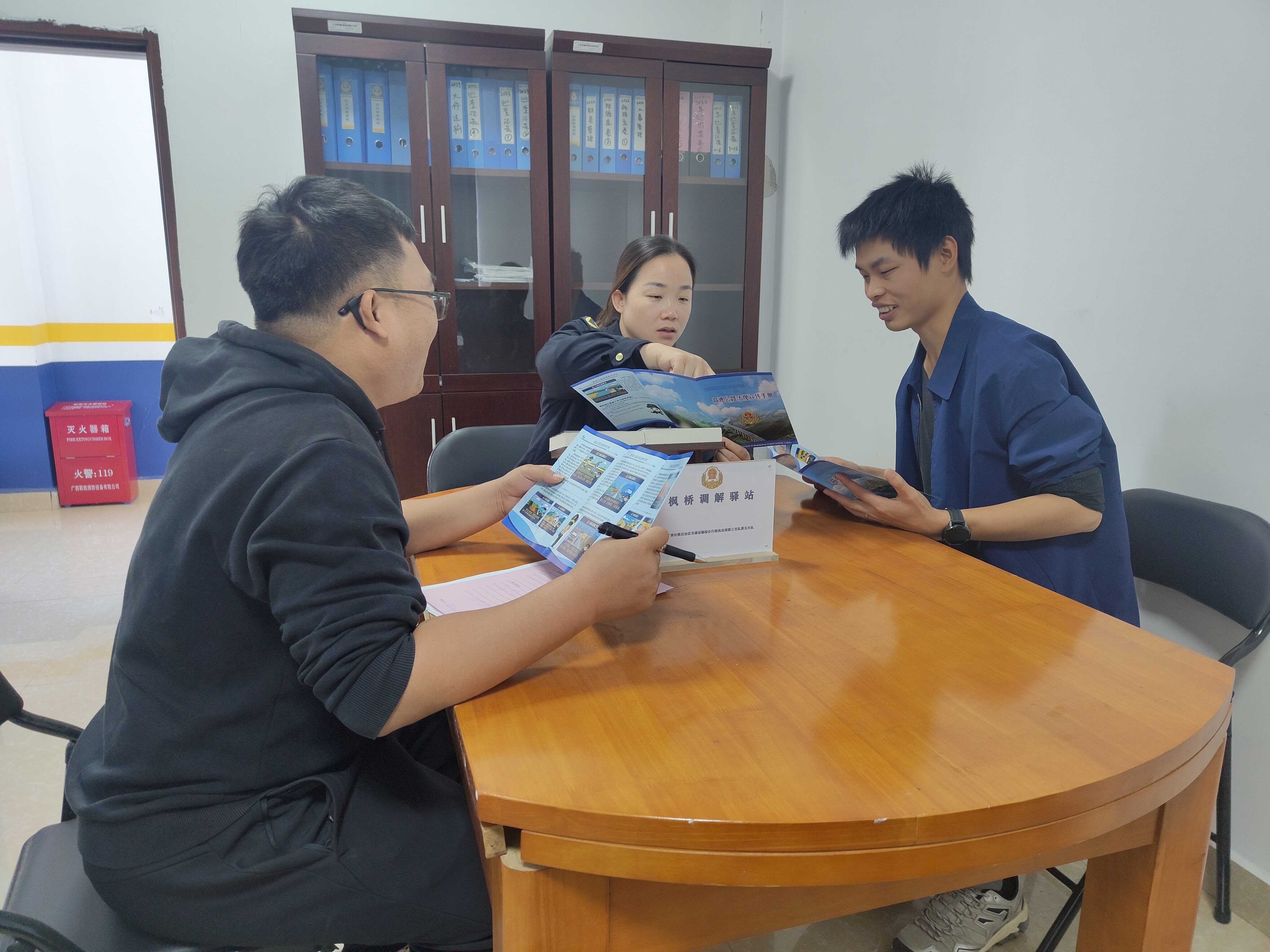 来宾讯通讯员 唐敏敏 摄影报道)近日,自治区交通运输综合行政执法局第三支队第五大队“枫桥式”调解室正式启用,通过“调解+普法+服务”的模式,切实将执法矛盾化解在源头、解决在基层,为群众提供便捷高效的法律服务。