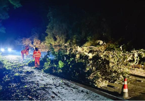 防城公路养护中心:连夜处置倒伏路树 保障公路安全畅通