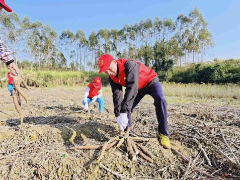 活动当天,志愿者们在农户的指导下,逐步掌握木薯从松土刨根、完整拔出、去泥理根到整齐归拢的采收方法,以及沃柑成熟度辨别、专业工具使用与轻巧剪摘的全套农作技巧。随后,志愿者们分工协作,默契配合:负责木薯采收的志愿者以锄头松土,将结实的木薯连根拔起、抖落泥土、整齐堆放;负责沃柑采收的志愿者则手持果剪,穿梭于果树之间,精准挑选成熟果实轻剪入筐。据统计,此次活动共协助农户采收木薯近八百斤、沃柑数筐。