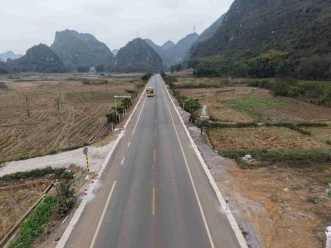 省道216线靖西市弄通屯至桃花谷段路面改造工程完工后。