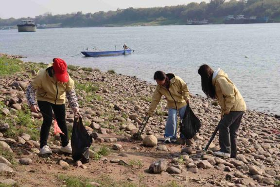 活动中,该养护中心女职工前往辖区南木镇山塘村,与村干部、村民分工协作,手持铁锹、垃圾夹等工具,对村内公共活动区域、白沙洲江边沿线环境卫生进行集中整治,重点清理江边垃圾和乱堆乱放杂物,进一步改善村容村貌,营造干净整洁的乡村环境。同时,向村民发放环保宣传资料,普及环保知识、垃圾分类方法及人居环境整治相关内容,引导村民自觉参与家园清洁,共同建设美丽乡村。