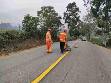隆安公路养护中心养护人员在省道215线K157+400路段补划磨损标线。