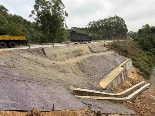 据了解,该工程位于博白县松旺镇横塘村路段,处置长度30米。此前受强降雨影响,路段右侧边坡发生滑塌,局部坡面受损,影响路基稳定性。施工中,该养护中心采用综合加固方案开展养护作业,在坡脚设置路堤挡土墙,减缓坡面坡度,并在路侧设置护肩墙,坡面铺设水泥毯。同时,对局部亏坡及冲刷部位进行修复,并增设了水沟及急流槽,将边沟水引至坡脚外,有效防止雨水再次冲刷坡面。
