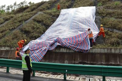 据了解,此次演练模拟持续降雨天气引发高速公路边坡局部滑坡,导致约20立方米土体侵占应急车道的突发险情。模拟险情发生后,各参演单位快速反应、协同配合,交警部门第一时间对事发路段实施交通管制与车流疏导,确保处置现场外围秩序稳定;交通运输执法人员严格落实现场安全管控要求,开展现场勘验与秩序维护;高速公路运营部门及养护单位按照“先通后善”原则,快速推进滑坡土体清理、边坡临时支护及防护措施布设,同步落实每小时40公里限速管控。经过约一小时的紧密协作,滑坡路段全面抢通,恢复正常通行,演练达到预期目标。