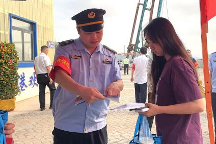 活动中,联合工作人员向过往群众发放安全普法宣传资料,围绕水上交通安全、乘船安全注意事项、港口应急避险知识、游客出行权利义务等内容开展现场宣讲,并向群众送上印有安全提示的手提袋、扇子、矿泉水等物资,切实把法治关怀与暖心服务送到群众身边。同时,组织开展媒体采访,全面展示港口安全普法的特色亮点与工作成效,切实营造尊法学法守法用法的浓厚氛围。此外,该支队依托“兴港护航”党建品牌,在候船厅设立党员先锋服务岗,解答群众关心的登船流程、乘船安全、应急求助等咨询,同步开展出行引导、秩序维护、政策解读等工作,让群众在便捷出行中切实感受到法治保障。