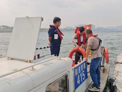柳州航道和船检管理中心工作人员检查船舶应急救生设备配备情况。