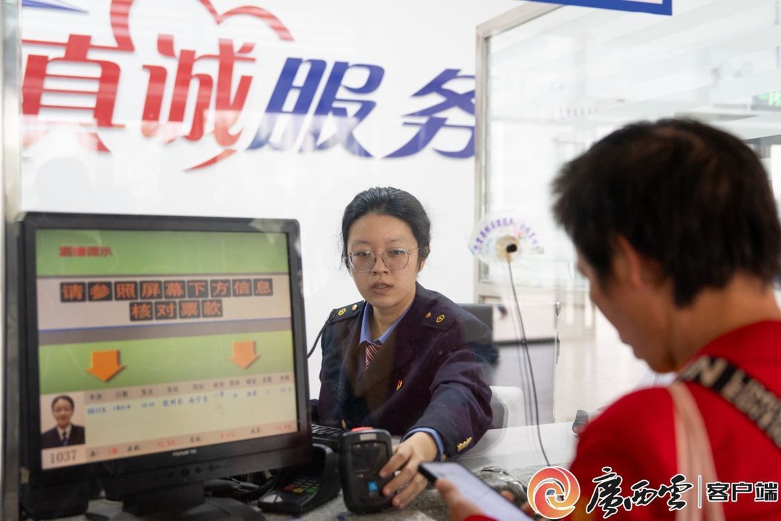 售票员为旅客办理售票业务。何家海 摄