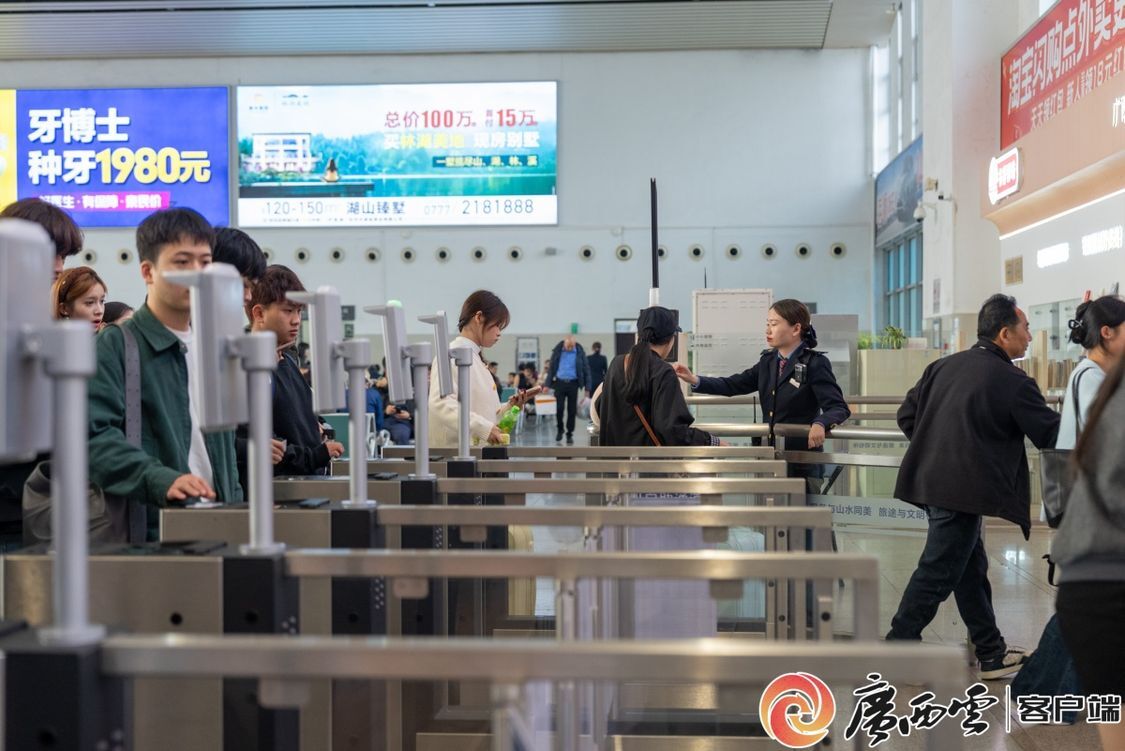 以南宁、柳州、桂林为节点,国铁南宁局提升区内主要城市群公交化开行水平,加密通达粤港澳大湾区、长三角、成渝地区等方向动车频次,新增南宁东~杭州西、南宁东~重庆西、南宁东~福州、柳州~广州(白云)、桂林~广州(白云)、梧州南~广州(白云)等22列热门方向动车组,助力粤港澳大湾区与北部湾经济区“两湾”联动,推动广西深度对接长江经济带、成渝双城经济圈。依托西延高铁开通利好,首次开行南宁东~延安高铁2列,为两地红色人文交流搭建便捷运输桥梁。新增南凭高铁动车2列,南宁与凭祥间往返动车增至10列,凭祥与桂林首次实现动车直达,为广西边境口岸城市人员出行提供更快捷出行条件。此外,延长区内通达贵州盘州、云南大理、广东珠海和汕头等城市的高铁动车线路,强化粤桂黔区域互联互通,为区域经贸往来与乡村振兴注入动力。