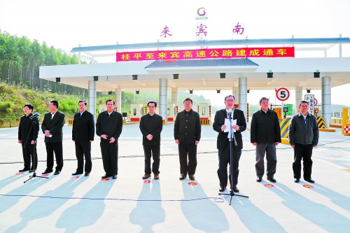 经过1000多个日夜的攻坚克难,桂平至来宾(武宣至来宾段)、百色至靖西、靖西至那坡3条高速公路交出了一份完满的答卷。同日,黄道伟宣布了柳州(鹿寨)至南宁高速公路改扩建工程开工。广西“县县通高速”建设开局之年实现了“开门红”。