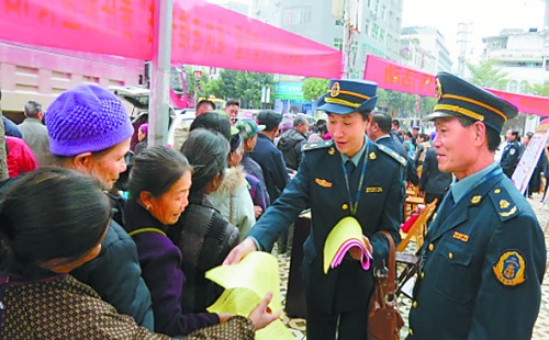 西林讯(通讯员 摄影报道)为准确宣传解读党的十八届四中、五中全会精神,广泛宣传宪法,大力弘扬宪法精神和社会主义法治精神,123日,西林公路管理局路政执法大队组织执法人员积极参加依法治县领导小组成员单位联合开展的西林县201512.4国家宪法日法制宣传暨“谁执法谁普法”责任制宣传活动和法律咨询活动。该局路政执法人员向群众发放宣传单,并为群众解答问题。