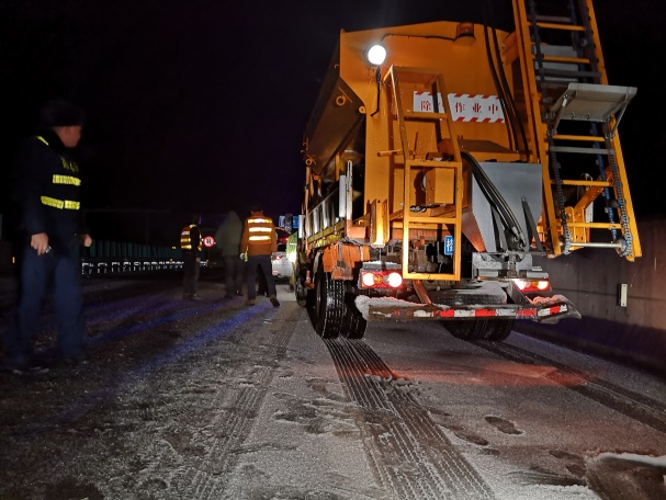 四是开展除冰保畅工作。出动撒盐车、除雪车、铲车进行除冰,投入工业融冰用盐和融雪剂,准备麻袋、锥形桶、防滑链等应急抢险物资,人工除冰也同步开展。