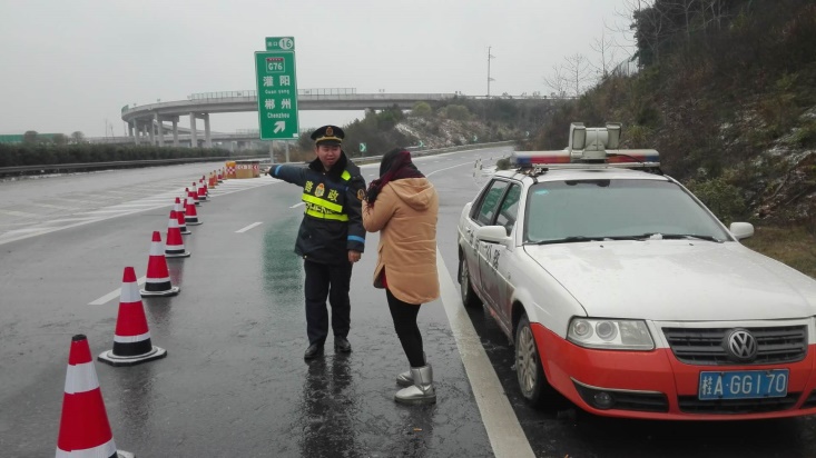 图2:高速路政人员加强封路预警提示和引导
