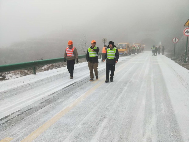 二是加大道路安全巡查。分组实时监控路面状况,通过与交警等部门合作,对辖区公路灾害多发路段实行夜间巡查轮班工作制。对道路、桥隧及施工现场安全隐患排查,及时掌握路况信息,重点做好急弯、陡坡、桥梁等易结冰路段的预防和监控。