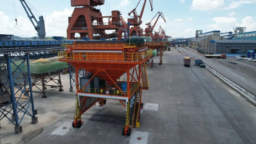 该批新型除尘漏斗长宽约12米,高约13米,自重约80吨,装卸效率达到400t/h,是名副其实的“大家伙”。作为北部湾港绿色港口建设的“老朋友”,四周均安装有袋式除尘器,装卸作业时能够极大地减少装卸货损,实现“无尘”卸货、装车,新型漏斗还自带防水功能,最大限度保障装卸作业过程中怕雨货物安全,提升装卸质量及效率。