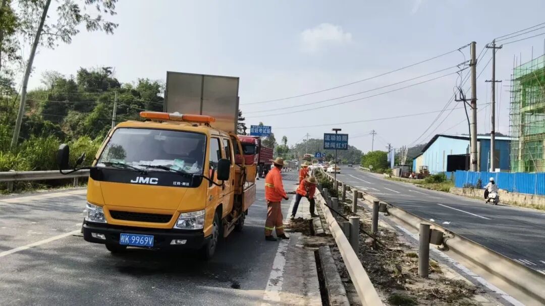 此外,针对易受台风影响的重点路段,该养护中心实施 “一点一策”的精准防护:加固国道325线边坡稳定性;完成省道515线黄屋屯大桥航运灯维护工作,确保桥梁通行安全与航运指引清晰。