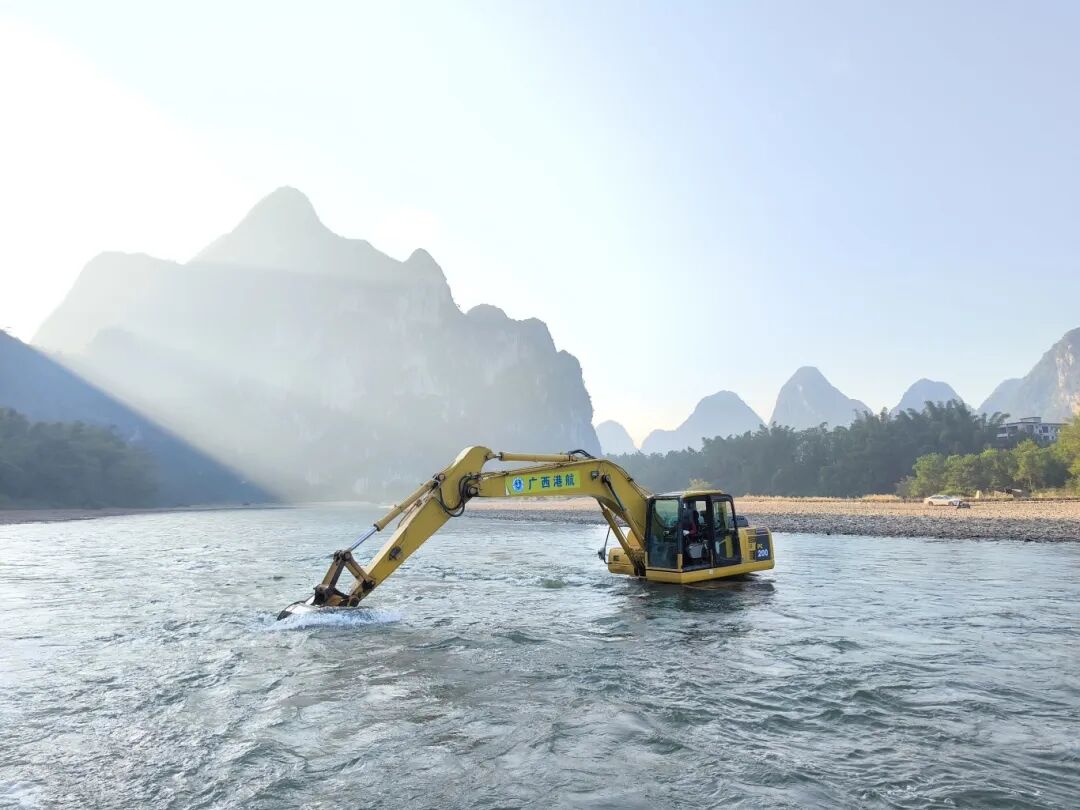 在漓江的守航队伍里,还有很多像周文、骆乾云这样的人......大圩航道站站长何家富,每天醒来第一件事就是查看漓江水情,结合天气预报、上游来水情况预判航道变化。他和同事们都练出了 “看水色辨水流、凭经验测水深” 的独门诀窍;57岁的黄刚平,更是漓江航道的 “定海神针”,他连续多年考核优秀,身兼航道疏浚处疏浚维护组组长、轮机长、挖掘机操作手等多项岗位职责,并荣获“桂林市交通运输系统先进工作者”称号。每年7月到次年3月,是黄刚平和同事们应急驻滩守点的日子,吃住在船上是常态。漓江卵石河床容易形成“堆子”阻碍航道,他们要时刻盯着江面,发现问题立刻处置;每逢国庆、中秋、元旦、春节这些阖家团圆的日子,别人往家赶,他们却往船上走,用自己的“缺席”换来了万千游船的顺畅通行。