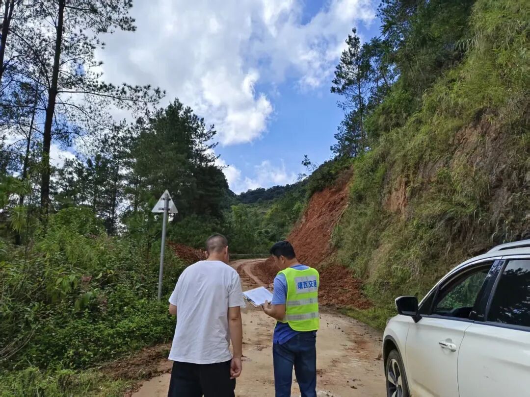 靖西市交通运输局工作人员到靖西市渠洋镇核查灾毁情况。