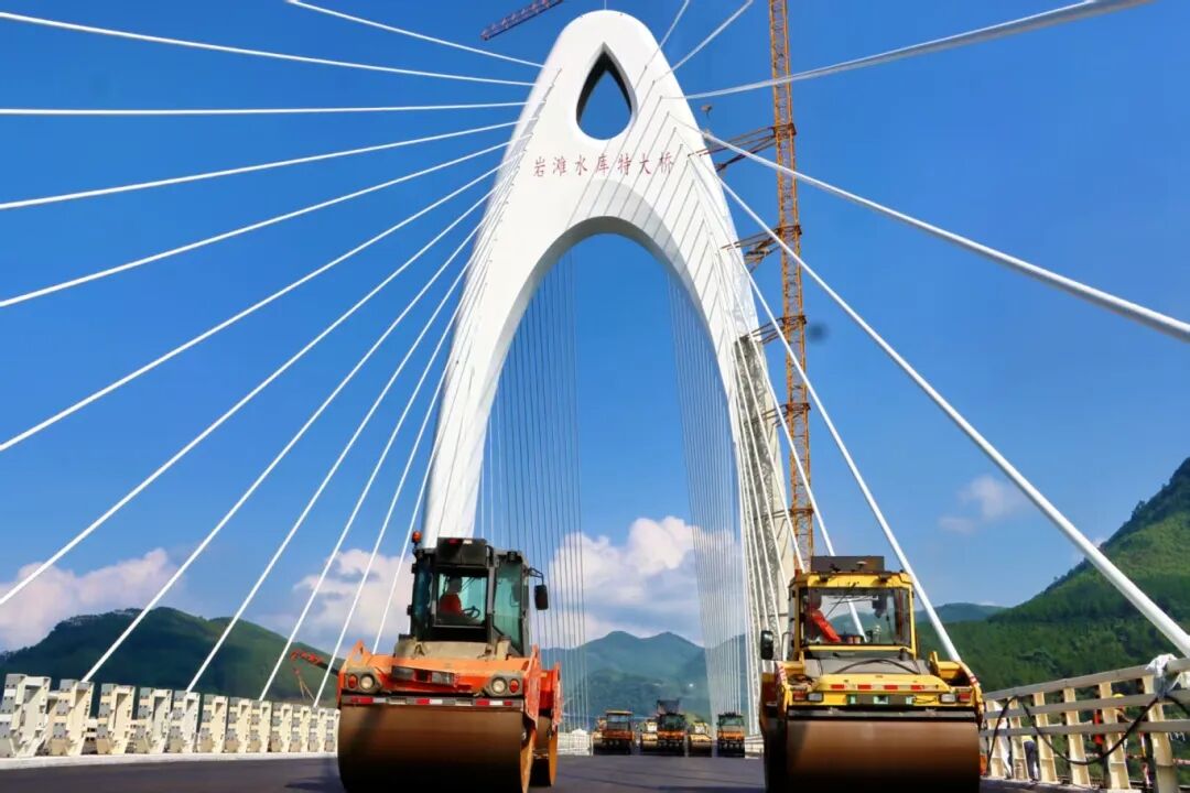 岩滩水库特大桥是项目主线沥青路面摊铺的“最后一公里”,为顺利完成最后冲刺,项目建设团队针对大桥结构特点提前谋划,优化施工组织,强化技术交底,严格把控混合料温度、摊铺厚度与碾压遍数等关键指标,实现沥青路面“内实外美”与行车舒适目标,全力打造品质路面。