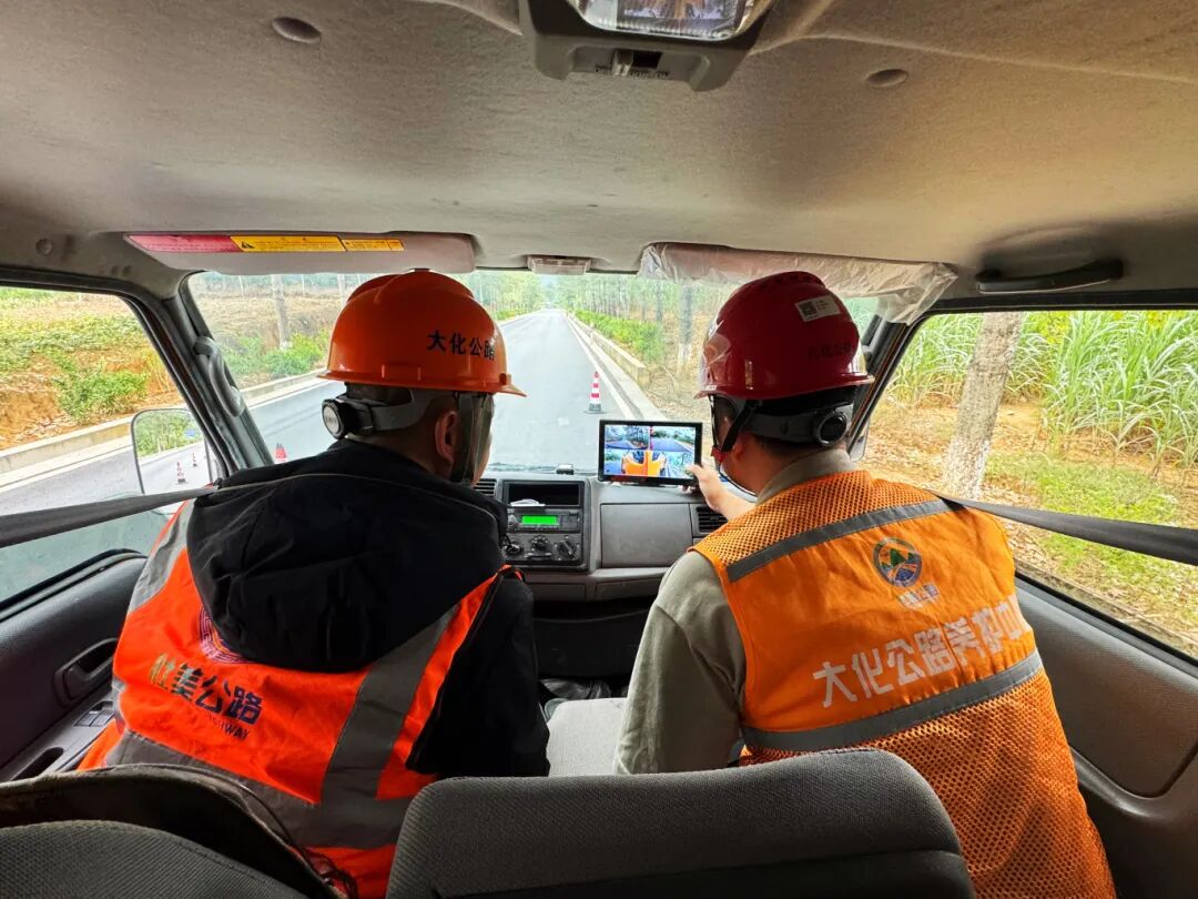 大化公路养护中心工作人员检查养护车辆全景影像设备安装情况。