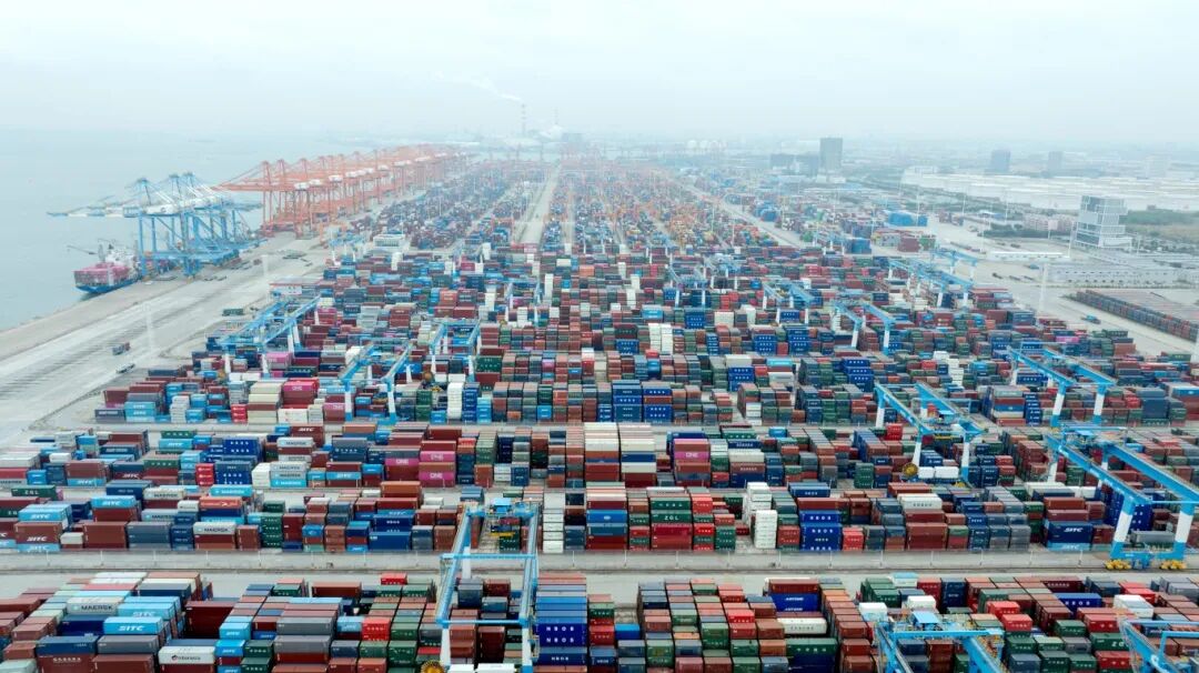 北部湾钦州港自动化码头堆场。(张宇 摄)