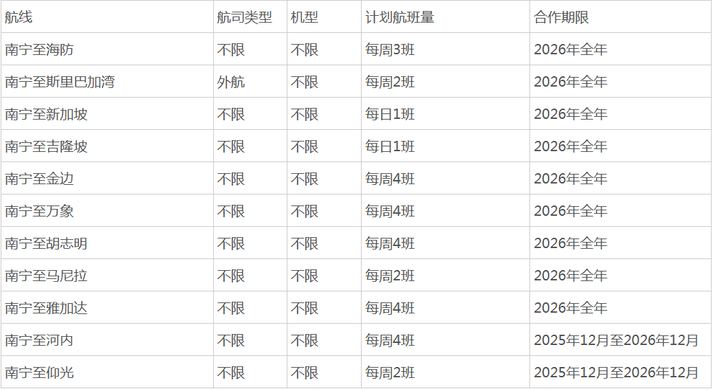 南宁吴圩国际机场关于东盟国际客运航线合作公告