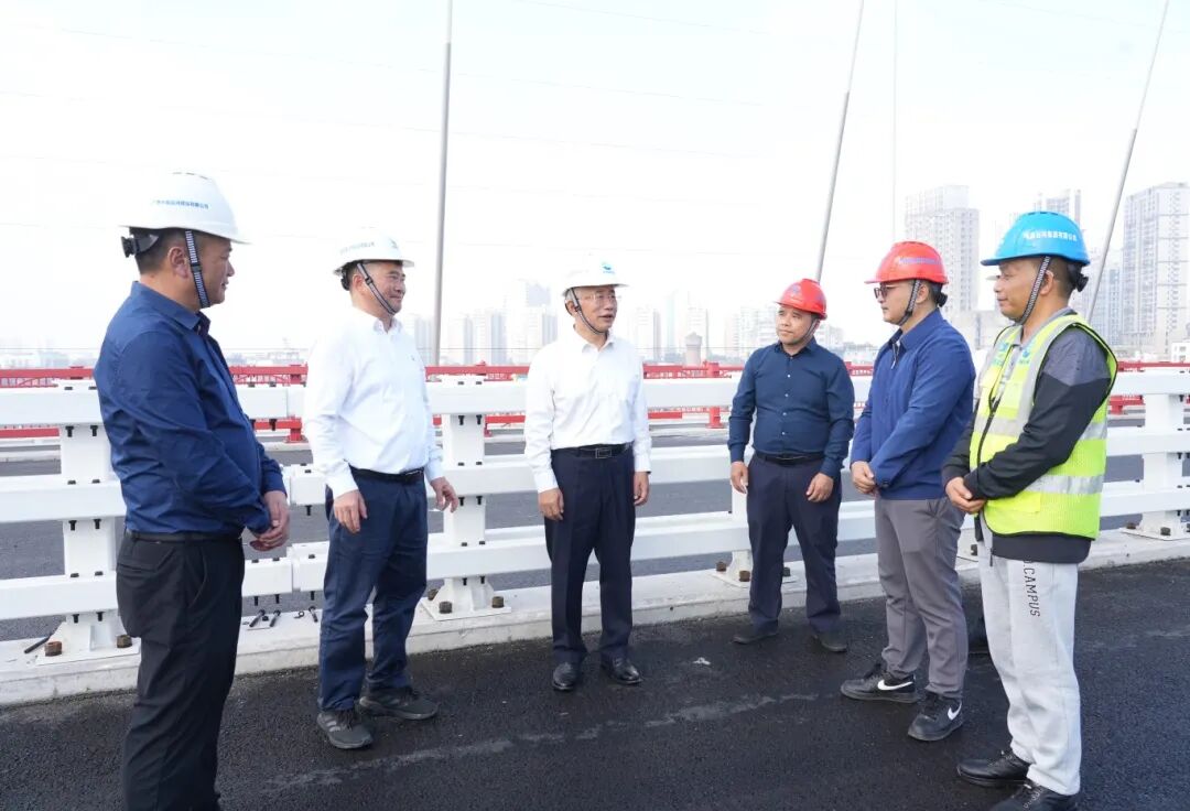 刘可在平陆运河南珠大街跨江桥调研。(平陆运河集团 供图)