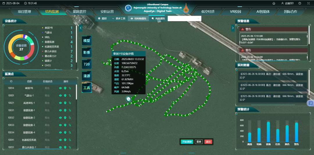 荣获东盟合作特色奖“中泰数字孪生智慧港——宋卡府油码头智能航道与结构安全一体化示范工程”项目,由广西交通职业技术学院与泰国东方皇家理工大学、广西交通设计集团联合研发。该项目依托广西基础设施三维数字孪生工程研究中心的技术积淀与平陆运河项目科研经验,针对泰国宋卡府油码头航道淤积与浮动结构安全协调难题,创新性提出“船—桥—码头同频理论”,研发基于时空卷积神经网络的智能预警模型,构建“空天地船”一体化监测网络与中泰跨境数字孪生协同平台。通过部署GNSS、IMU及应力传感网络,实时采集毫米级位移与振动数据,利用强化学习算法动态调控浮体压载;整合航道地形、水流与泥沙数据,实现航道淤积72小时高精度预测,结合建筑健康诊断模型完成结构风险动态评估与预警,形成“感知-预警-调控”完整智能运维闭环。该系统支持英、中双语界面与自适应数据协议,示范运行期间预警准确率超95%,疏浚调度效率提升40%,运维成本降低约35%。作为中国—东盟数字基础设施合作的创新典范,该项目构建“联合研发—工程示范—标准共建”全链条协作模式,通过中泰院校联合人才培养、推动供应链本地化等方式,实现技术跨境协同与本土融入,其模块化、可复制的解决方案可推广至东盟200余个港口及内河码头,市场规模预计超50亿元,为区域港航数字化升级提供了可借鉴的智慧新范式。
