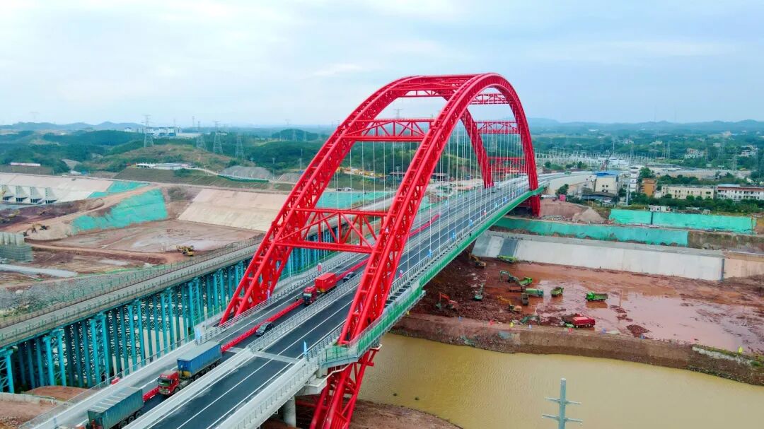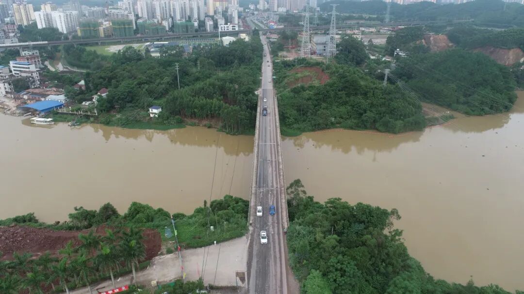 平陆运河G325广南线钦江大桥新桥全长397.04米,桥面宽28.5米,采用双向四车道设计,时速80公里每小时。与1988年建成的旧桥(宽12.5米,双向两车道)相比,通行能力提升近一倍。