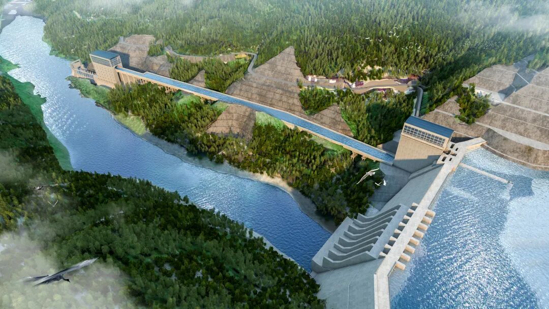 龙滩水电站1000吨级通航建筑物俯瞰效果图。(大唐龙滩水力发电厂 供图)