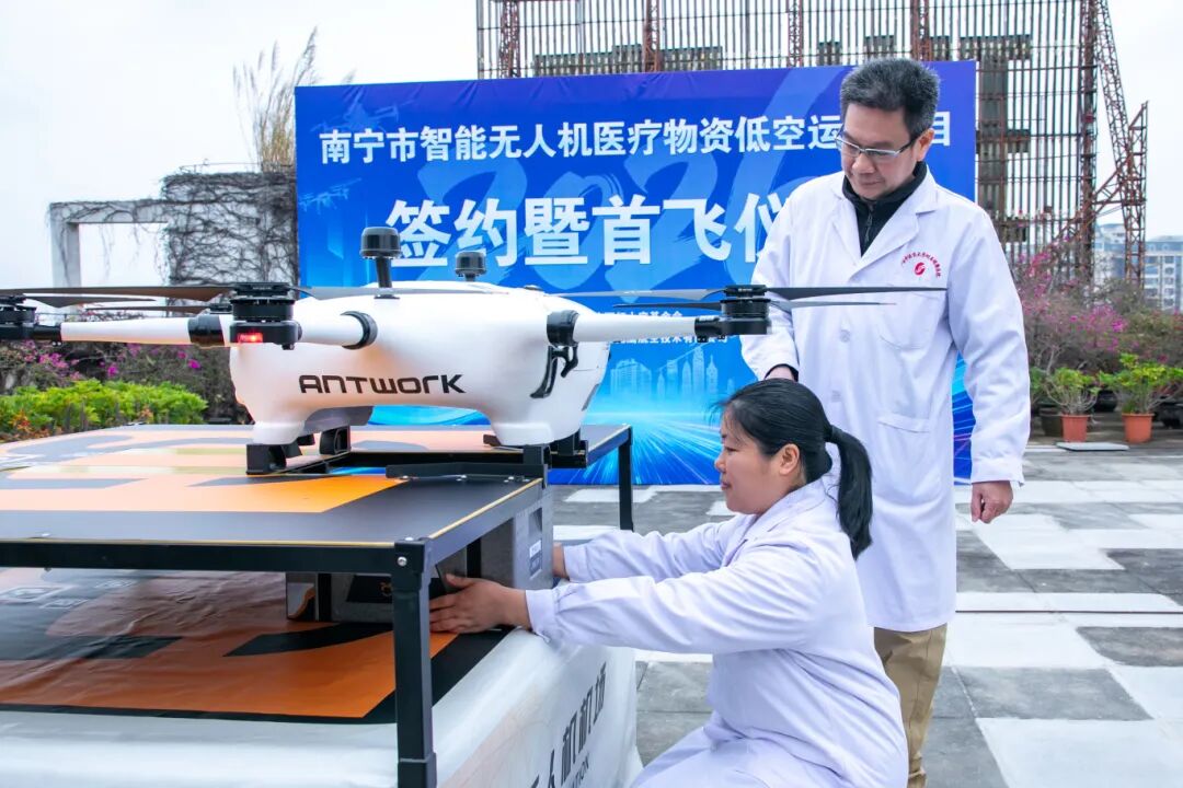 南宁市首条智能无人机医疗物资低空运输航线首飞成功