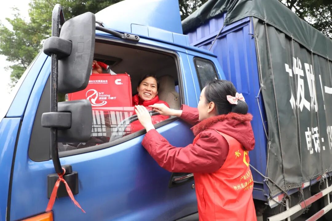 广西交通投资集团柳州高速公路运营有限公司志愿者为“卡姐”送上暖心礼包。