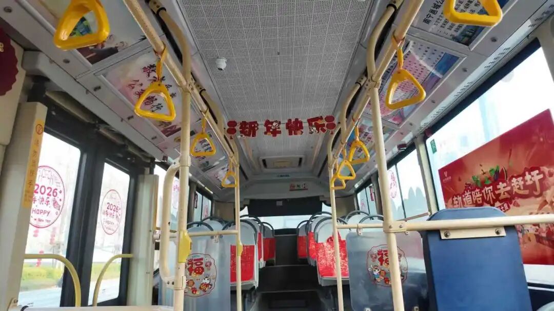 809路“菜篮子赶圩专线”车厢内的新春装饰。(南宁市交通运输局 供图)