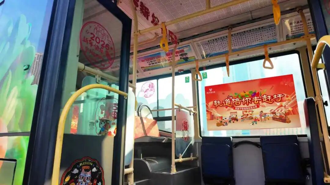 在相应的圩日接驳地铁站设立赶圩爱心休息区,解决市民采购后携带重物不便、疲惫难耐的难题。休息区配备有打包绳、折叠小拖车、公平秤、现金兑零点及免费的针线包,有效应对市民赶圩途中的突发状况。同时,809路公交车厢内新增了坚固承重挂钩,方便乘客悬挂年货重物,还以红彤彤的春联、精致窗花装点车厢,将新春氛围融入行车途中。