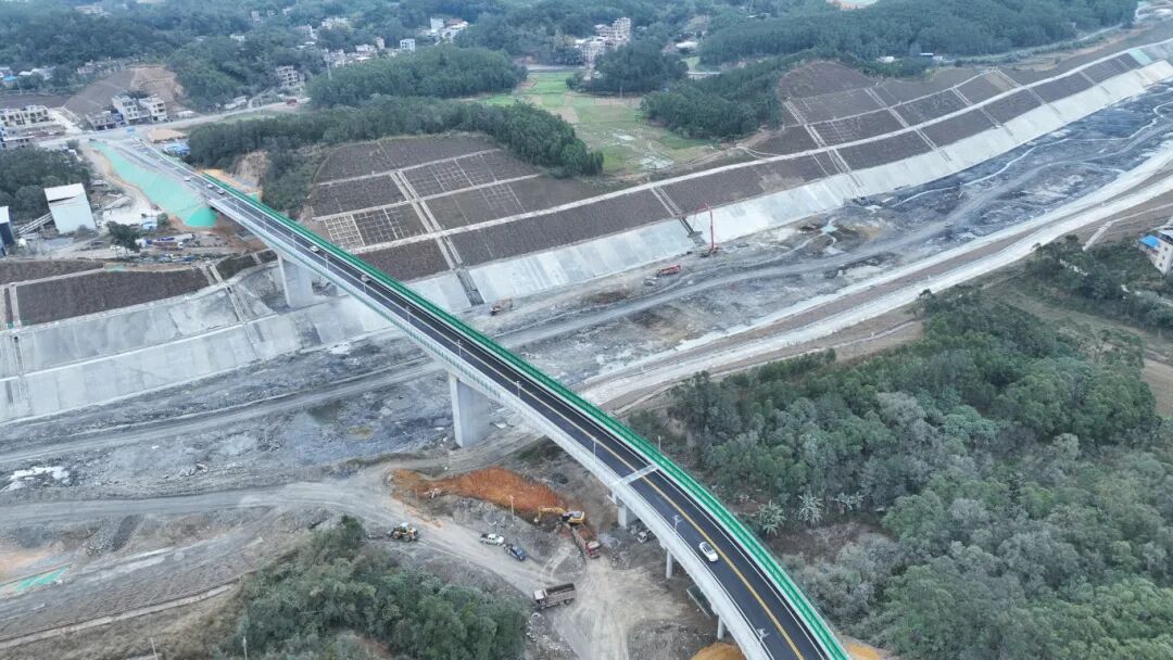 金塘村大桥连接钦州市灵山县沙坪镇金科桥与七里街,全长347米,桥面宽15米,采用双车道设计。该桥践行绿色工程理念,创新设置动物兼用通道,将配套隔音屏并种植攀爬植物,搭配乡土植被与食源植物,为松鼠、豹猫等本土野生动物打造安全迁徙走廊,实现工程建设与生态保护共生。