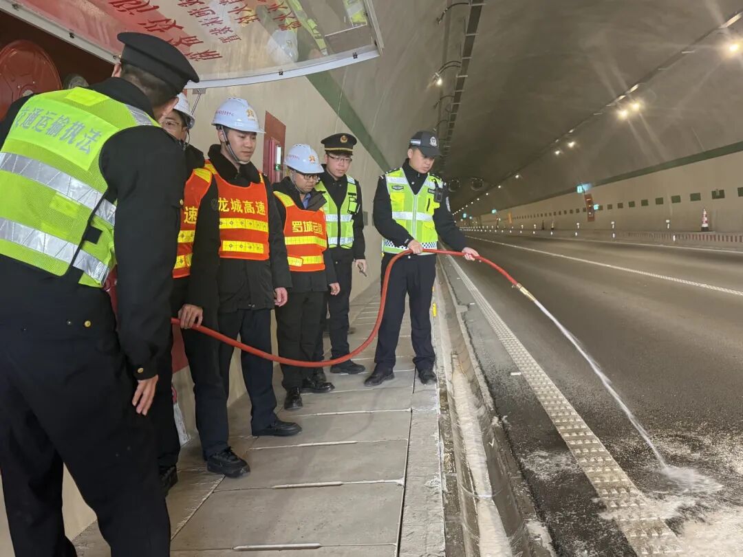 “警路企”联合检查组检查高速公路隧道安全情况。