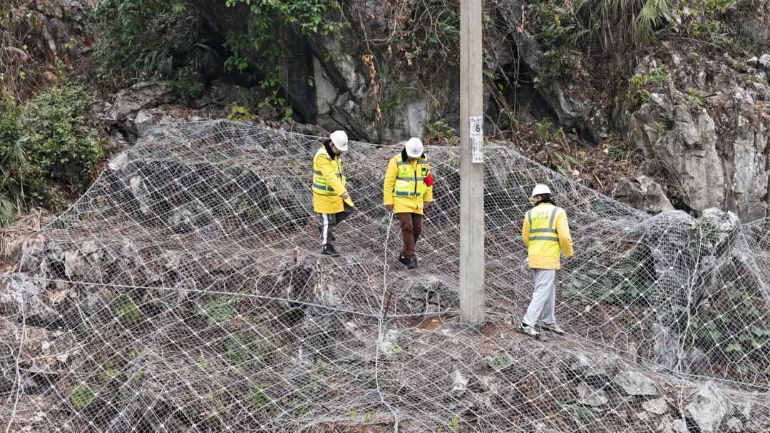 广西交通投资集团河池高速公路运营有限公司工作人员检查辖区高速公路边坡。