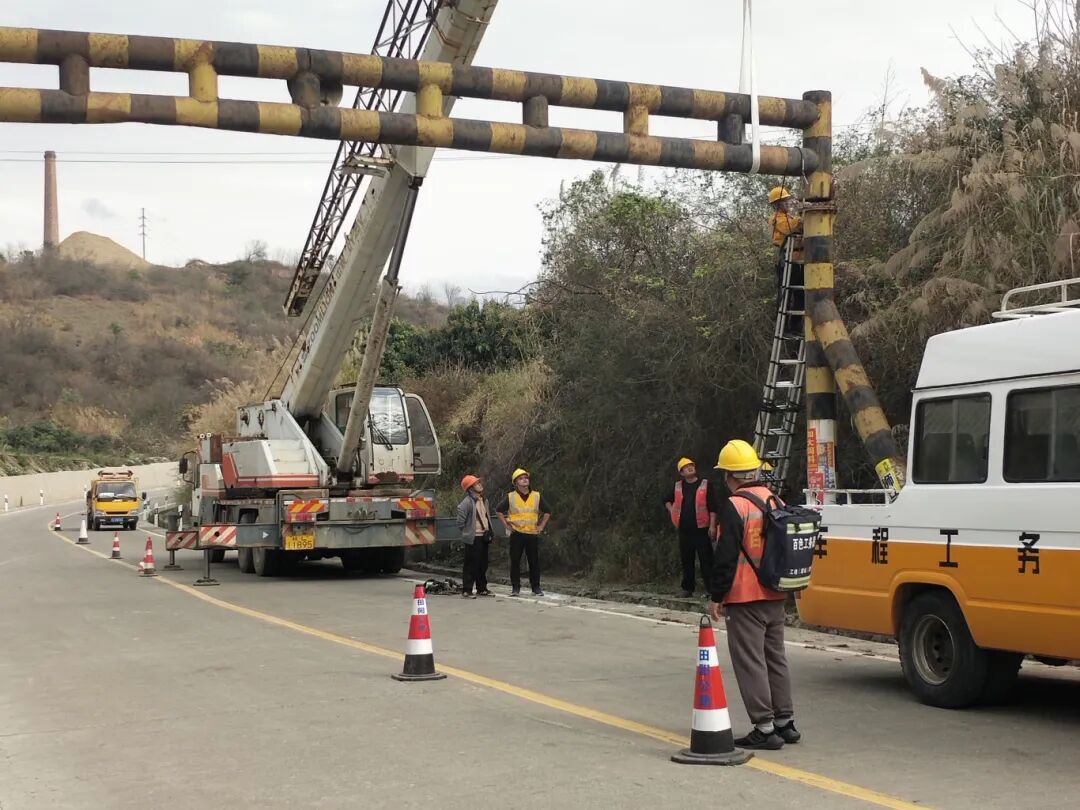 在各相关部门的紧密配合、协同作战下,抢险人员仅用3小时便完成限高钢架的起吊与加固作业,成功消除安全隐患,恢复路段正常通行,切实保障了返程群众的出行安全和顺畅。