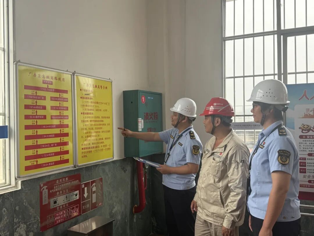 执法人员检查安全应急设施。