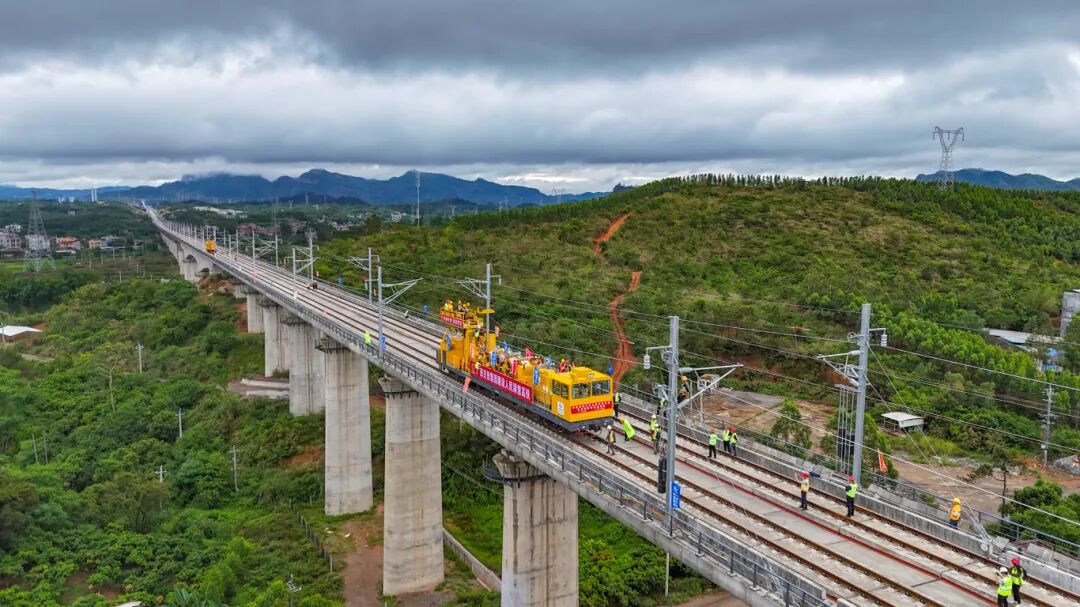 新建南珠高铁玉岑段首条接触网导线成功架设