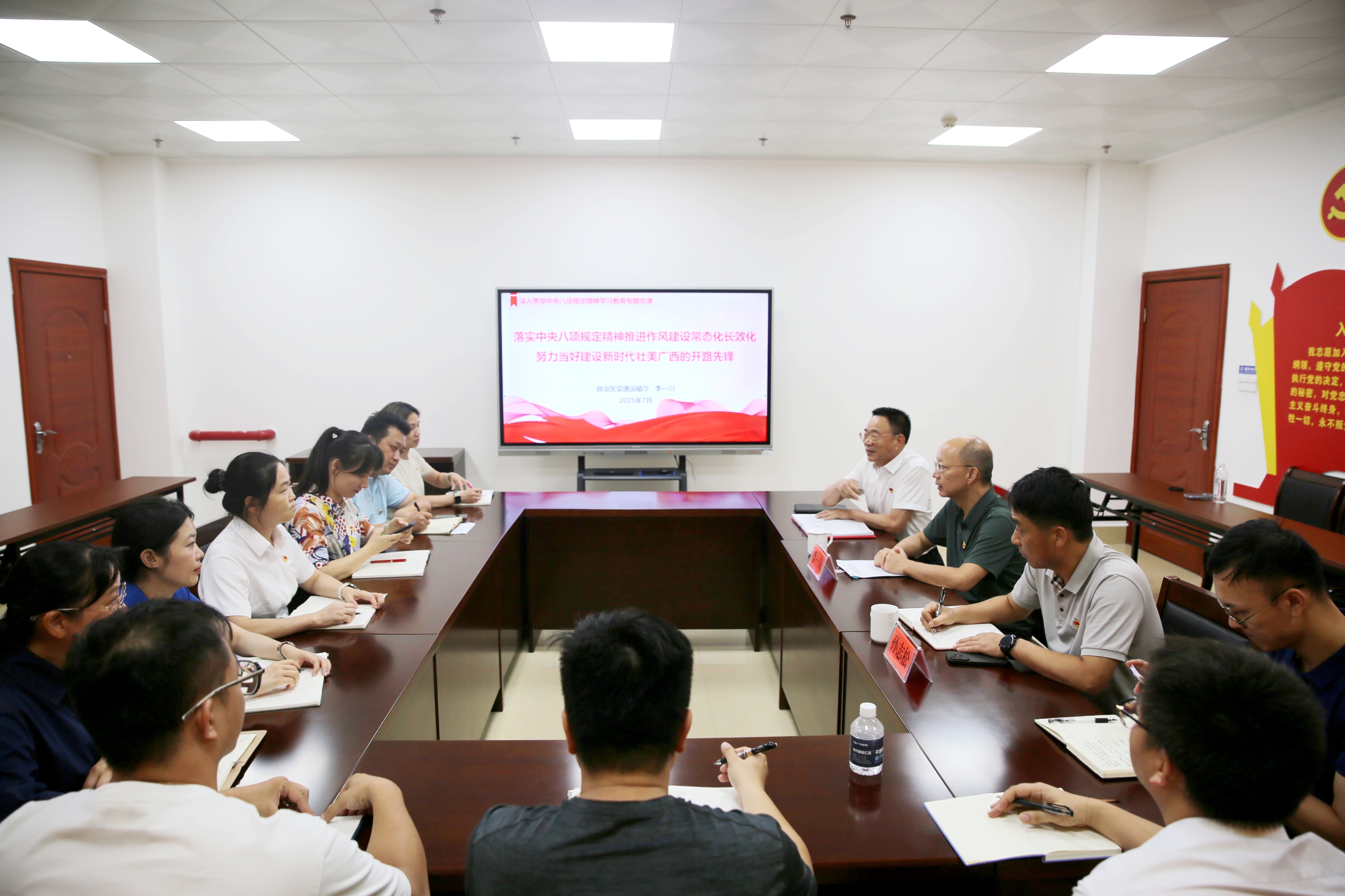为深入贯彻落实中央八项规定精神,扎实推进作风建设常态化长效化,7月3日下午,自治区交通运输厅党组成员、自治区铁路建设办公室专职副主任李一川为广西交通技师学院民用航空系党支部全体党员讲授《落实中央八项规定精神推进作风建设常态化长效化,努力当好建设新时代壮美广西的开路先锋》专题党课,广西交通技师学院民用航空系党支部书记吕建林主持。