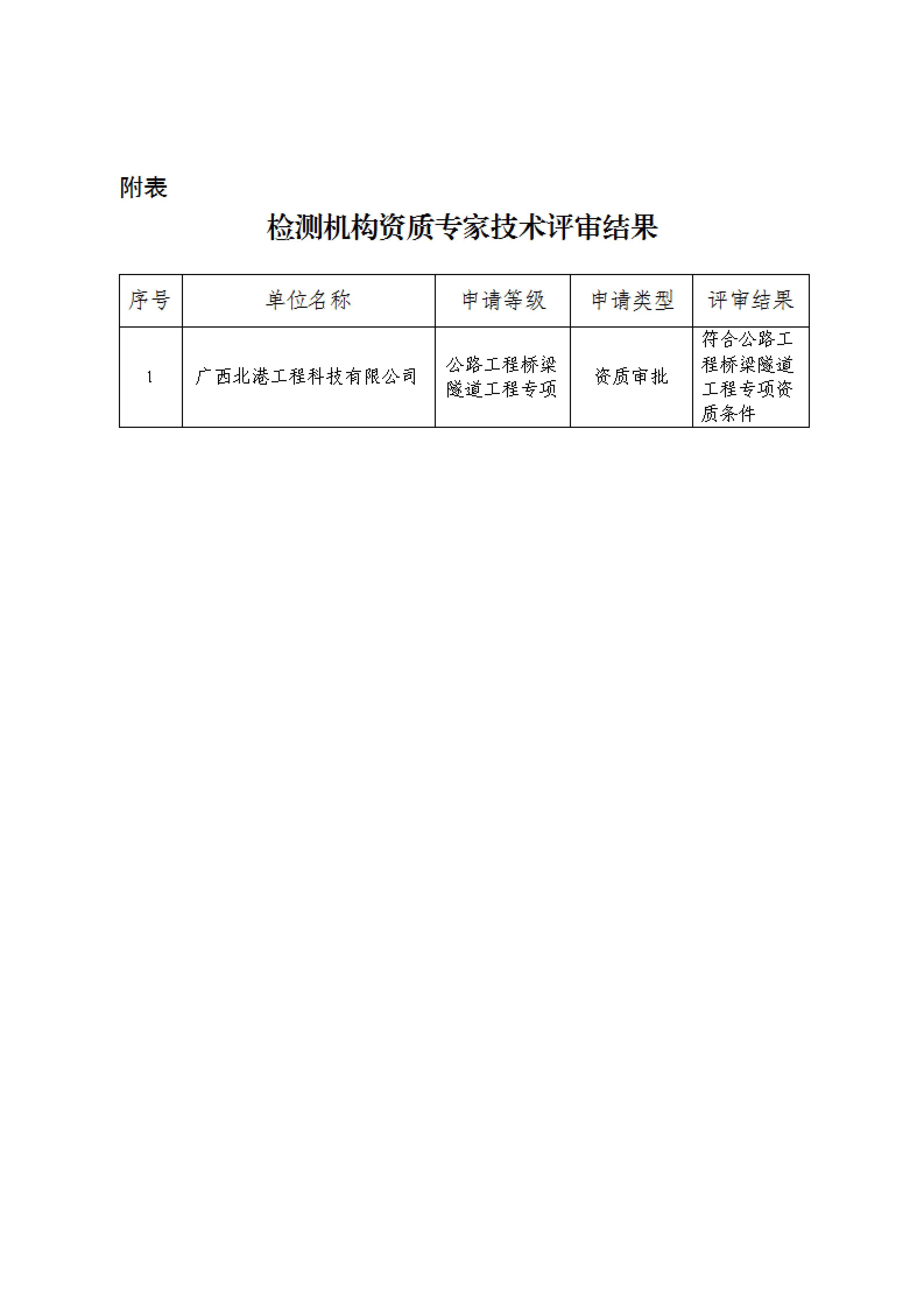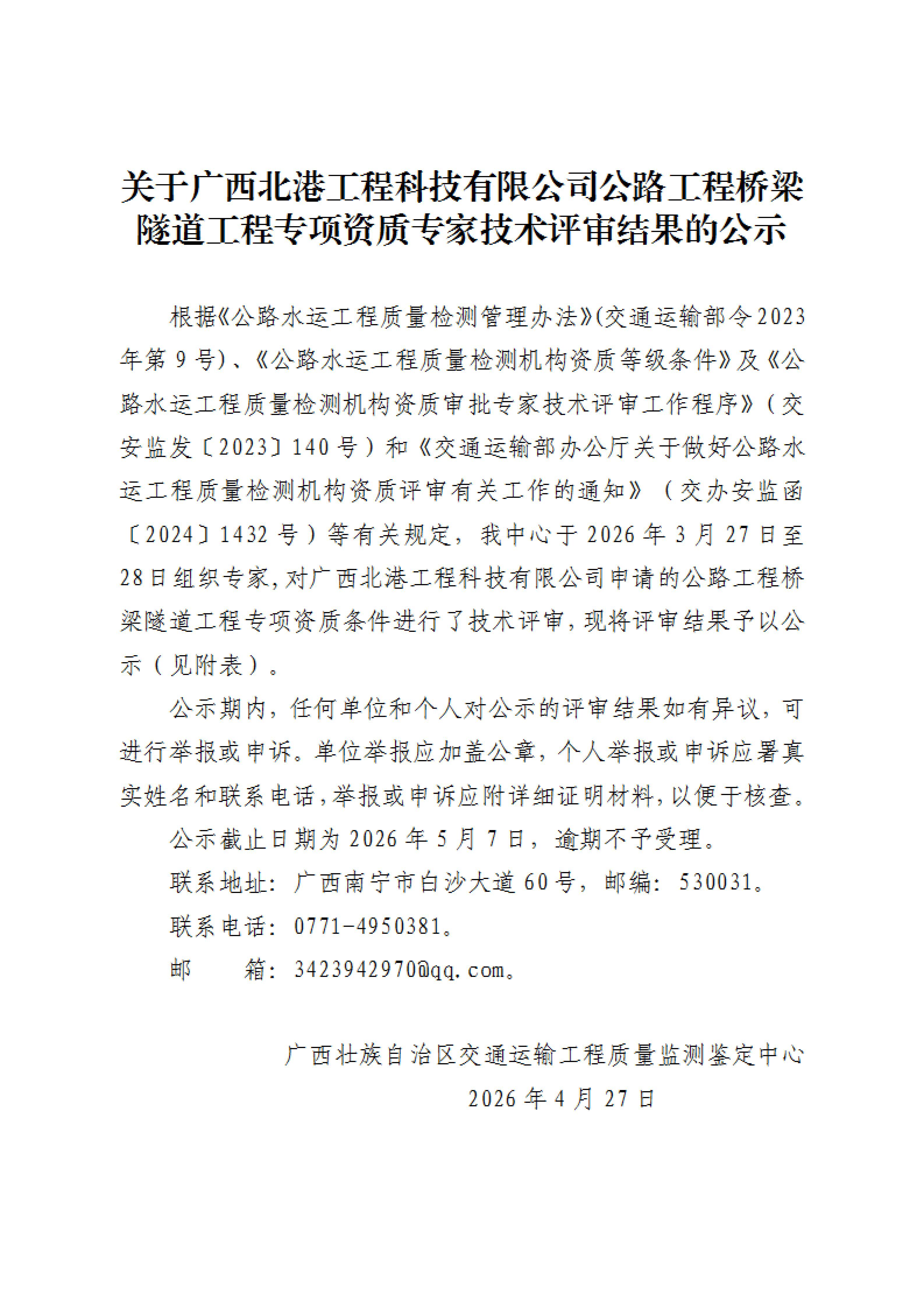 关于广西北港工程科技有限公司公路工程桥梁隧道工程专项资质专家技术评审结果的公示