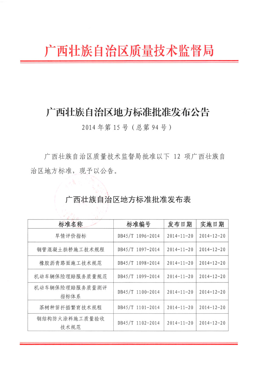 《橡胶沥青路面施工技术规范》(DB45/T 1098-2014)广西地方标准批准发布公告