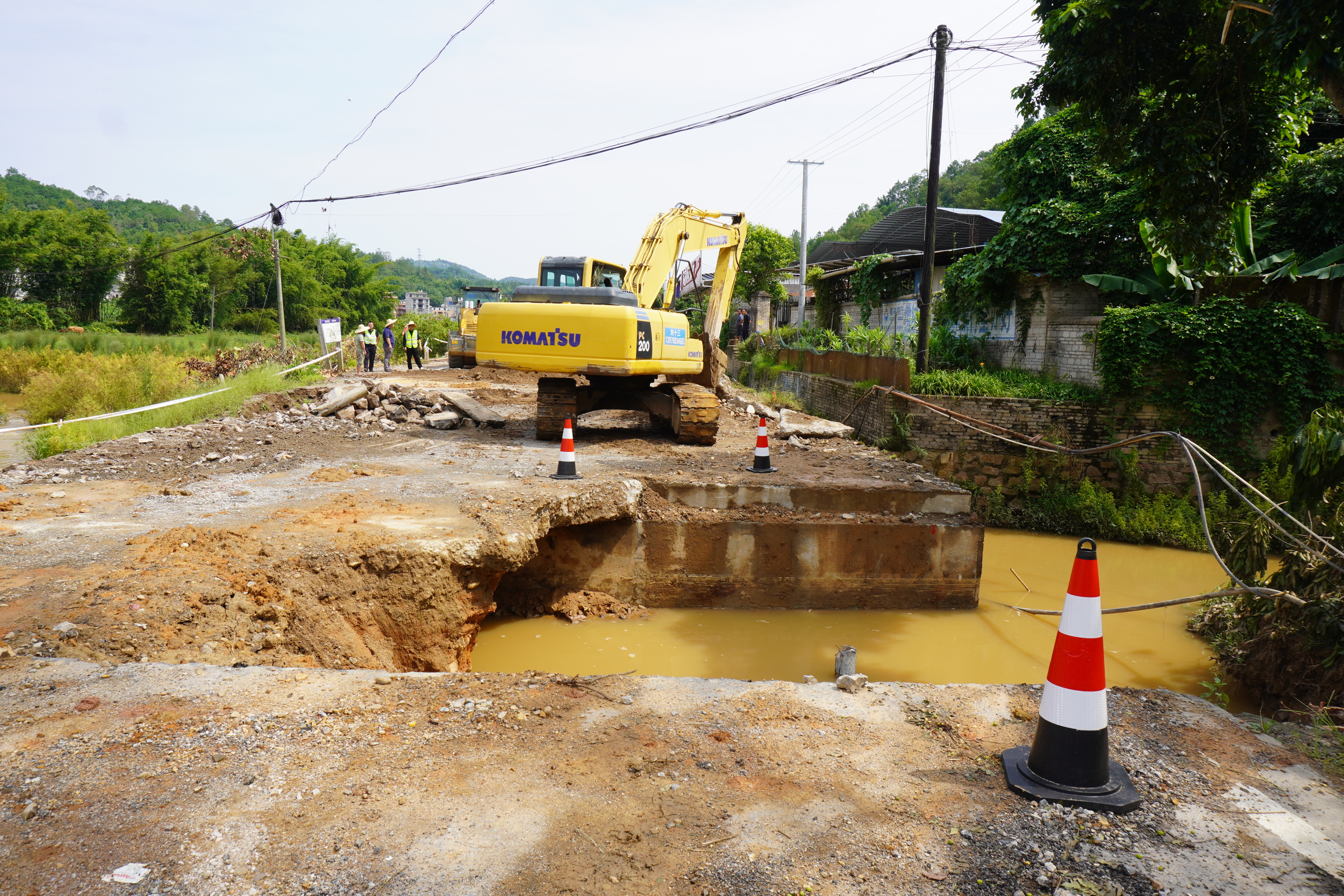 国道207线岑溪市南渡镇义新村路段改造现场。