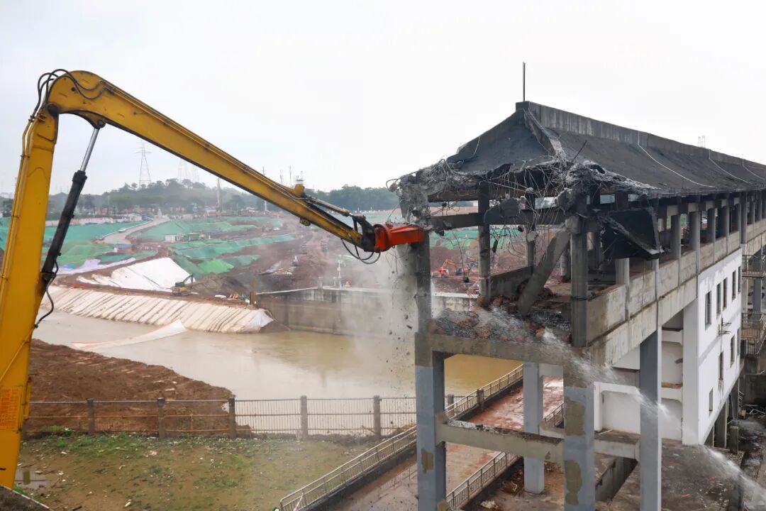本次拆除工作分为两个阶段。第一阶段拆除纵堰及右侧10—12孔闸门,以及厂房、进水渠段部分结构,目的是增加河道宽度,预防上游洪水来袭,防止出现壅水,淹没上游围堰。第二阶段是在今年9月枯水期完成水闸上部结构拆除以及闸墩和桥面破除。为确保拆除工作顺利进行,平陆运河建设管理团队精心组织设计、施工单位认真编制拆除专项施工方案,并多次召开专题会和专家评审会,深入研究拆除施工工艺流程和施工难点,为整个项目的快速高效安全推进提供了技术保障。旧青年水闸拆除采用了无噪音污染、无振动影响的液压钳施工工艺,严格把控扬尘,最大限度减少对周边居民的影响。来源:“平陆运河集团有限公司”微信公众号