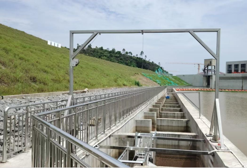 诱鱼设施通过水下诱鱼灯的光源引导,提高鱼类进入鱼道的效率。