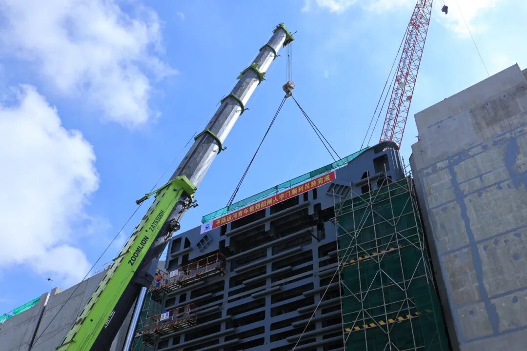 平陆运河青年枢纽完成船闸人字门吊装工作
