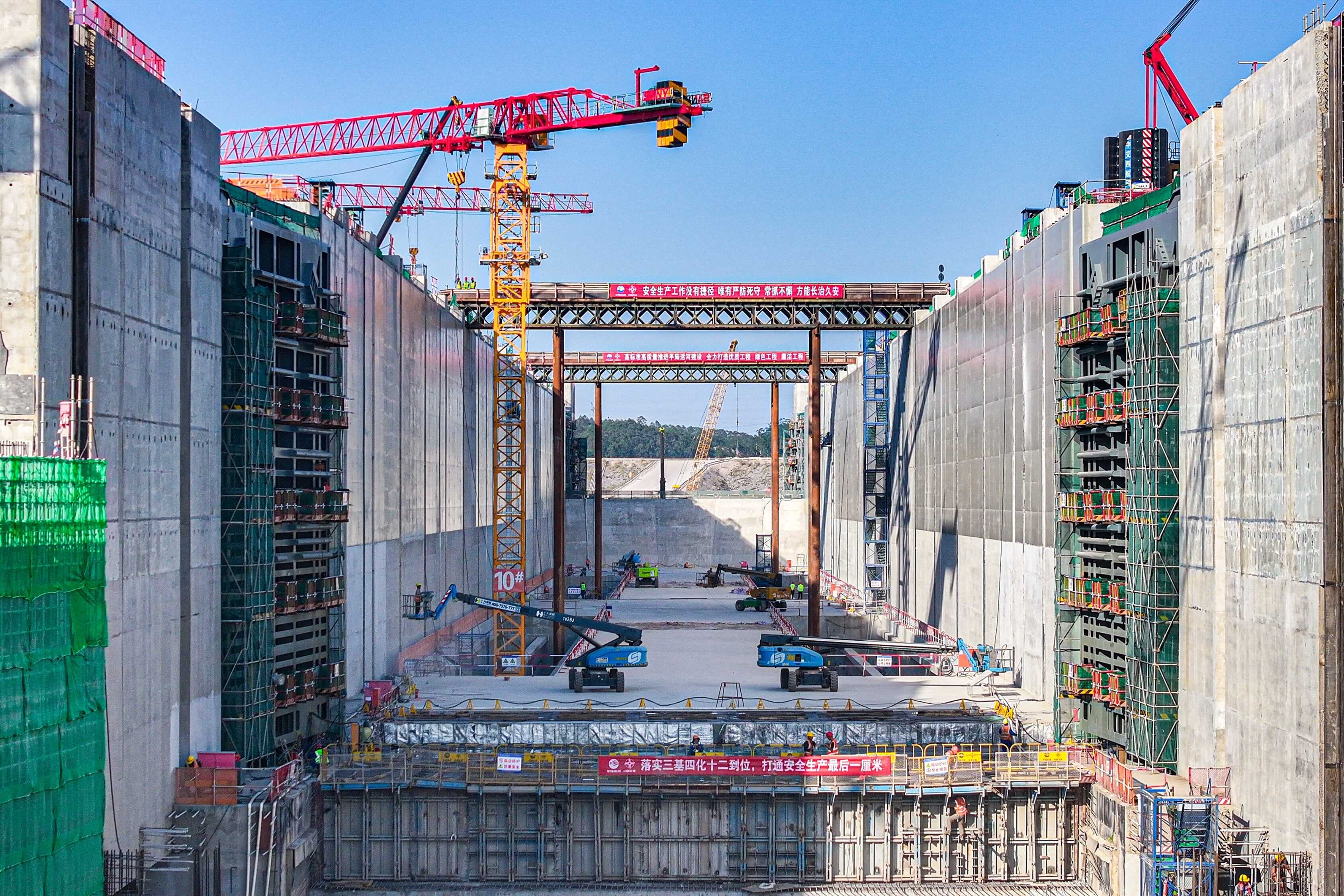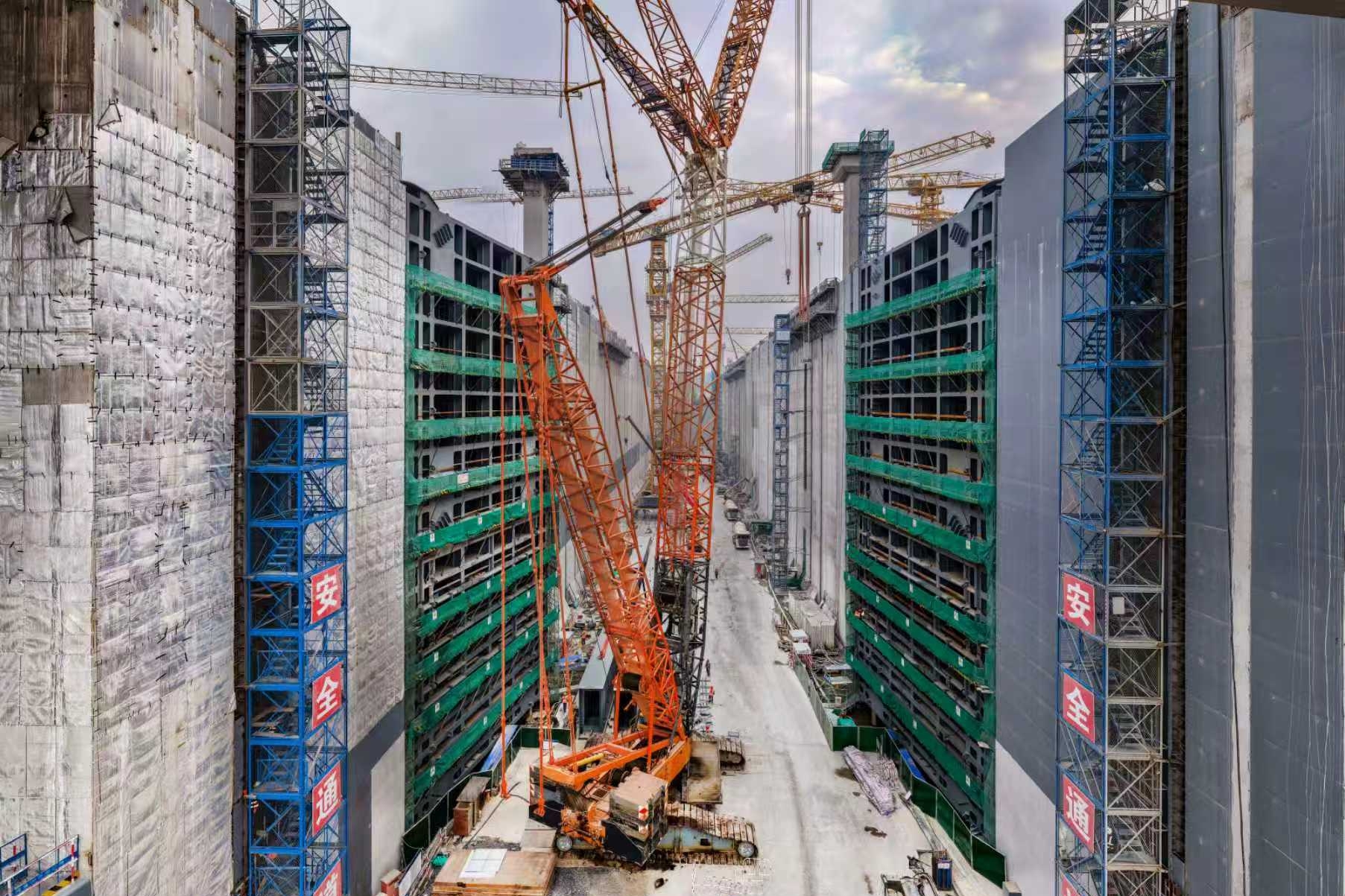 平陆运河三大枢纽共需安装24扇人字门,单个船闸上、下闸首各设置一套双门叶人字门,其中单扇门叶最大重量约1108吨,高度达39.08米。作为实现船闸运行的关键挡水设施,人字门承受着高水头差的水压力,直接关系通航建筑物设施及进出船舶的安全,为航运的顺畅高效提供重要支撑。