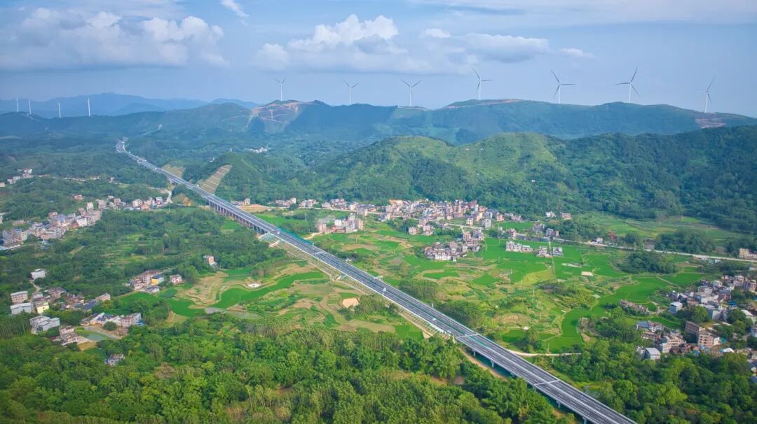 “一路一总站”串联“乡村振兴梦”项目依托的南湛高速南宁至张黄北枢纽互通段,是贯穿桂南腹地的乡村交通大动脉。该路段全长125公里,规划设置2对服务区、7个收费站(其中邕宁站暂未开通)及1个收费总站,线路蜿蜒穿梭于5个乡镇、120个村落社区之间,精准串联起多个特色农业强镇——“淮山之乡”那楼镇、“杨梅之乡”太平镇、“中国荔枝之乡”灵山县武利镇核心产区、“黄皮果之乡”大成镇,以及“国家地理标志保护农产品”浦北县妃子笑主产区白石水镇,同时无缝链接邕宁区特色旅游区、太平镇梨花谷等知名景点,形成“交通+农业+旅游”的融合发展新格局。