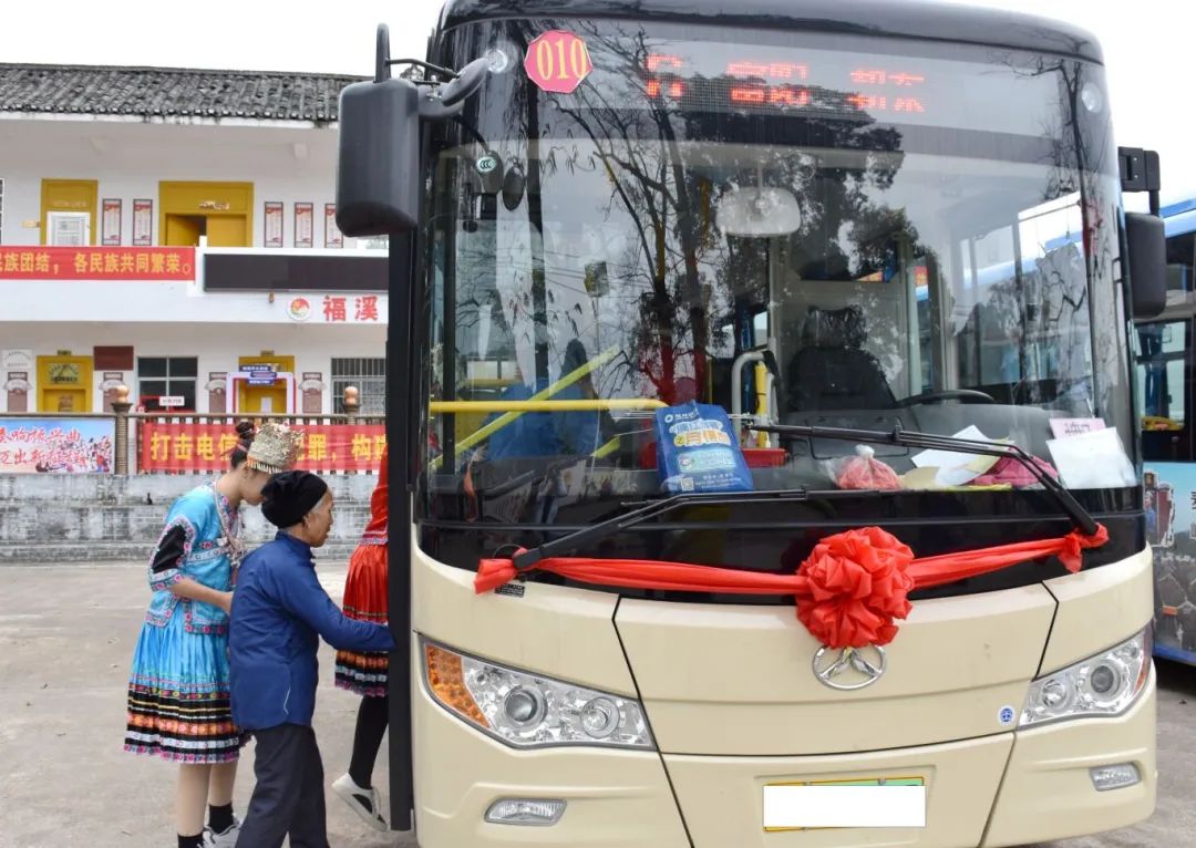 贺州市富川瑶族自治县福溪村村民乘坐新能源“适老公交”。
