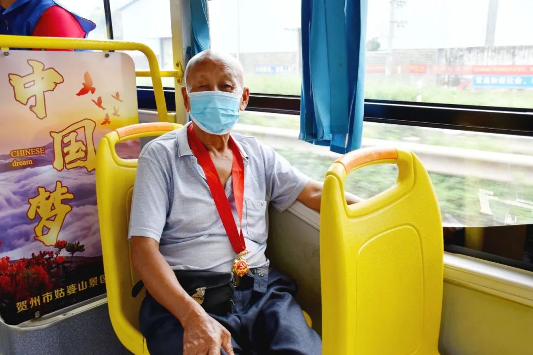 乘坐贺州公交出行的老人。